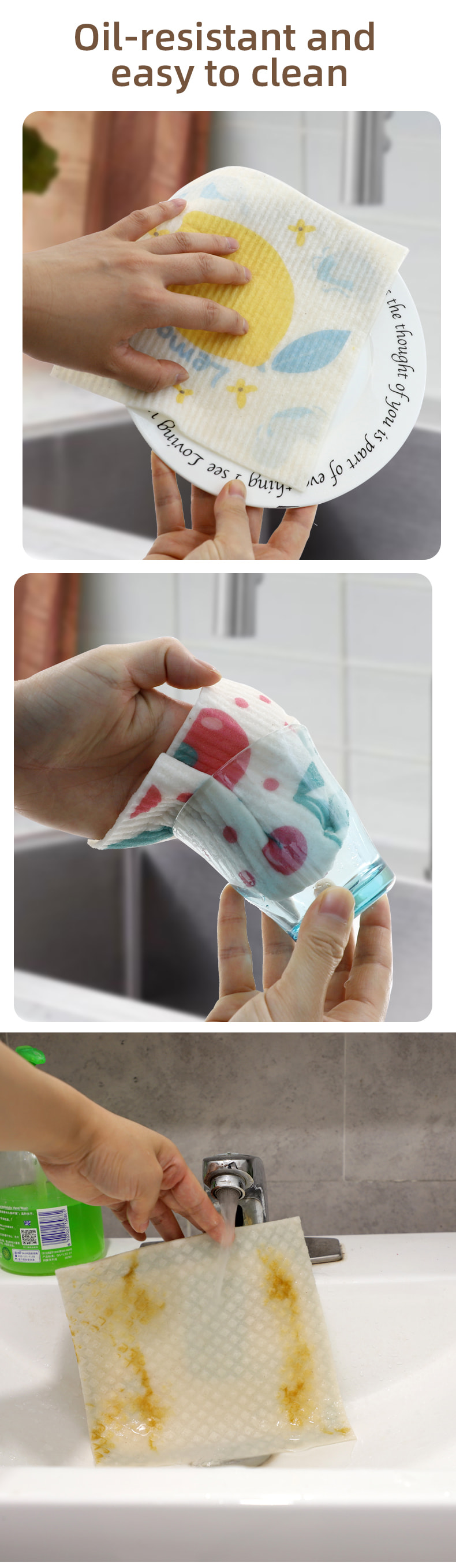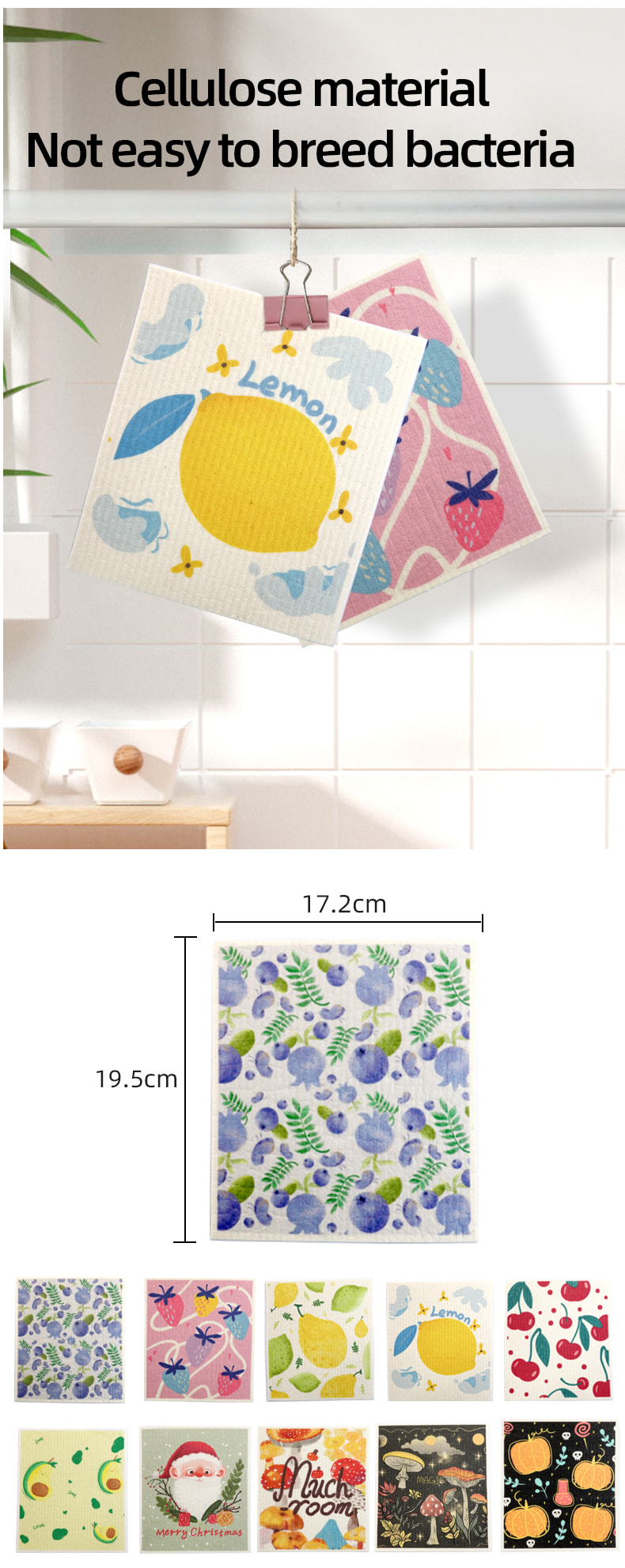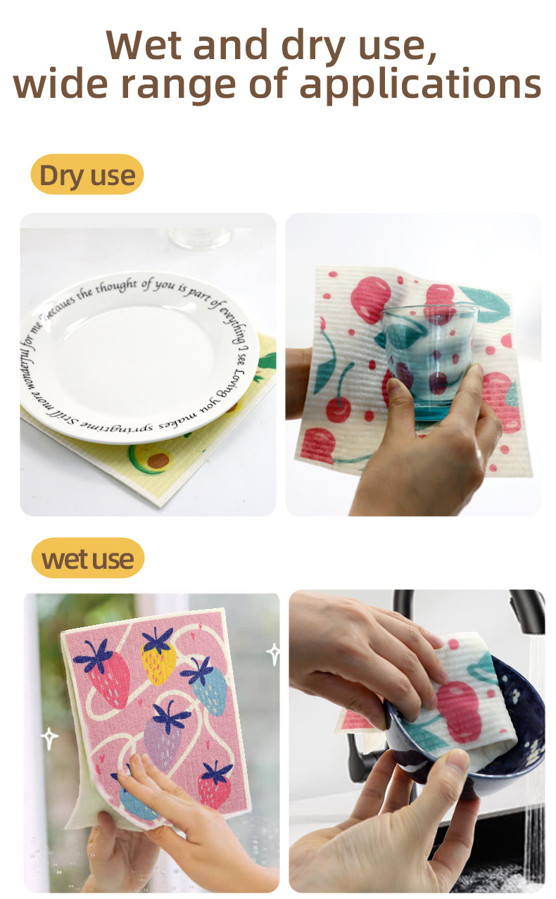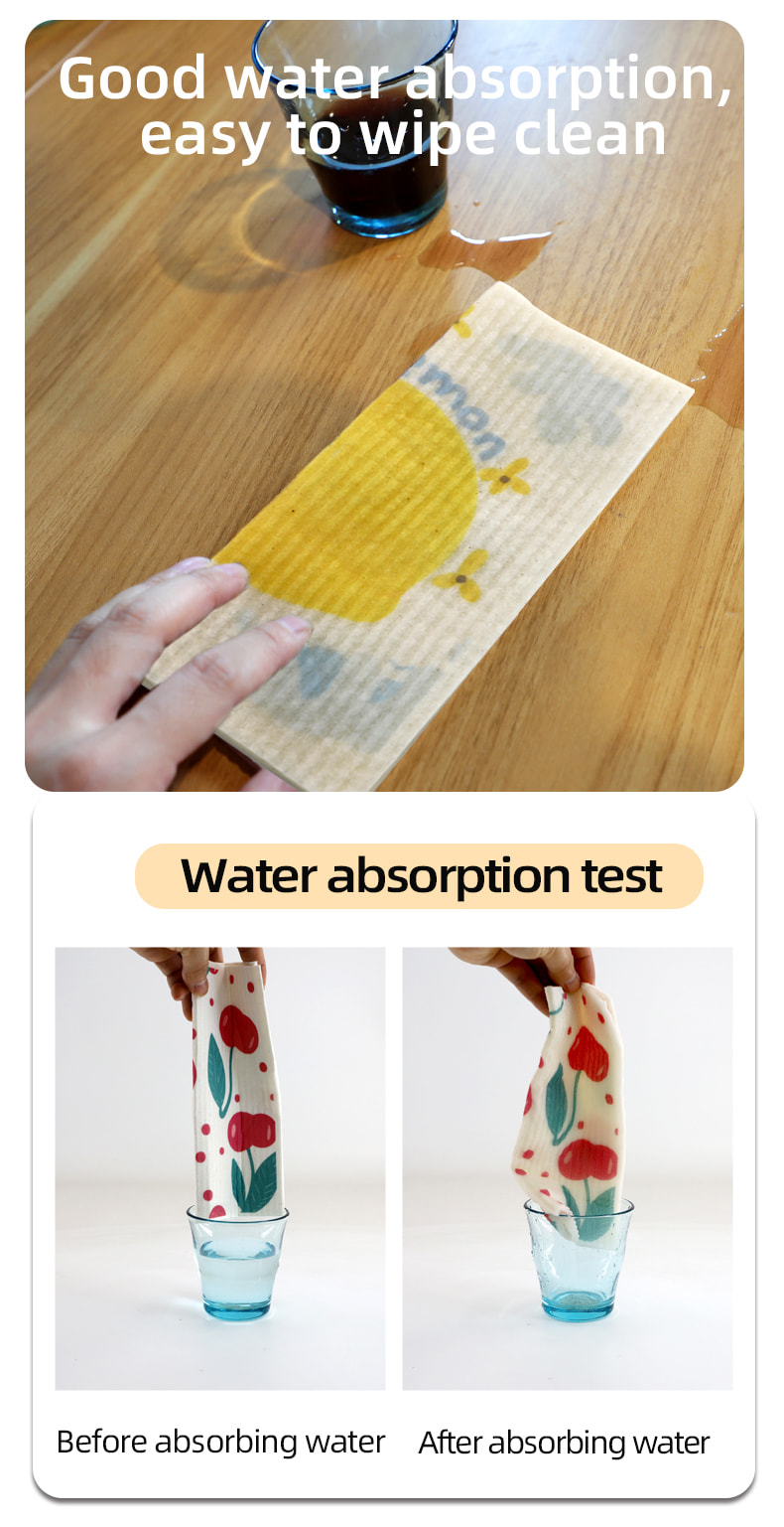 Naturlig cellulosa svampduk, bra mjukhet, bra vattenabsorption, lätt att rengöra, miljövänlig och nedbrytbar, hållbar, torr och våt, inte rädd för olja