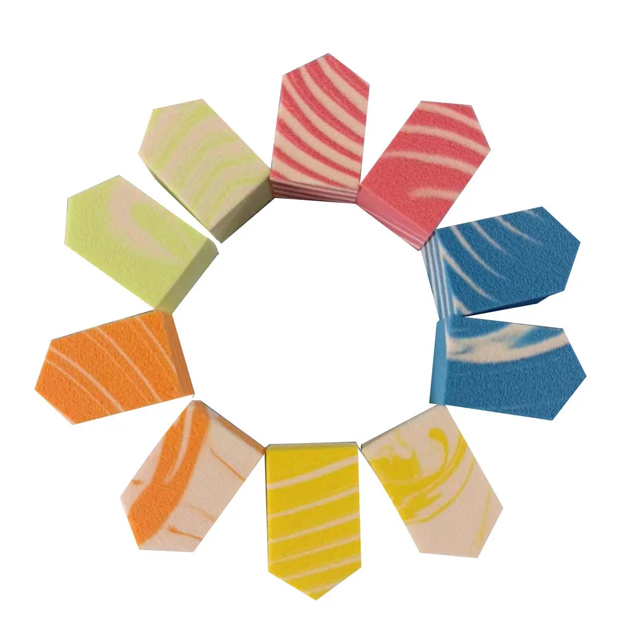 Powder Puff: är ett sminkverktyg, allmän puder- och puderbox kommer att innehålla puderpuff, ly-bomull och sammetsmaterial, som används för att bättra på foundation och kosmetika. Funktion: Sponge Powder Puff är mer lämplig för vattenanvändning, bekväm och enhetlig för att skjuta bort flytande foundation. Den triangulära formen gör det lätt att smeta ut ögonvrån och näsan och andra ställen. Våt och torr puder puff är i allmänhet cirkulär eller rektangulär, oavsett om den är våt eller inte, kan vara våt och torr puder i ansiktet. Så här använder du den: 1. Applicera först krämen över hela ansiktet, börja med pannan och kinderna, följt av mungiporna och hakan. 2. Använd sedan ena sidan av den cirkulära puderpuffen för att trycka bort separationen, i den ordning som du måste trycka från insidan till utsidan. Om du trycker på puderpuffen med pekfingret och trycker den utåt samtidigt främjar du en jämn absorption och bindning av separationen. 3. Vik sedan puderpuffen på mitten, doppa den i lite isoleringskräm och tryck försiktigt på nässidorna och mungiporna. Till sist, applicera en liten mängd av krämen på puderpuffen och tryck den försiktigt mot ögonlocket.