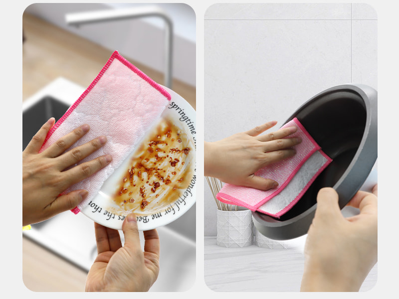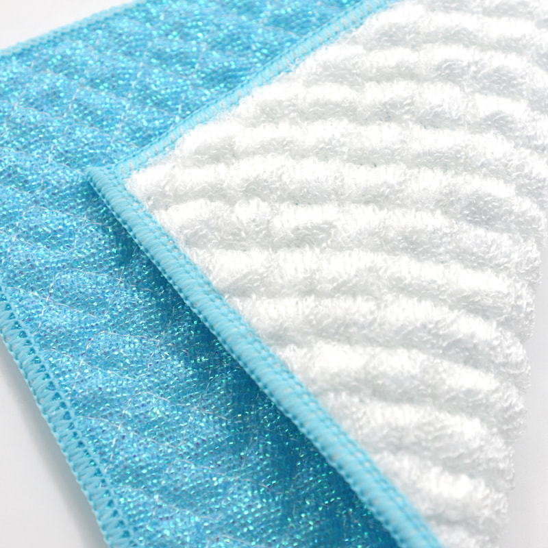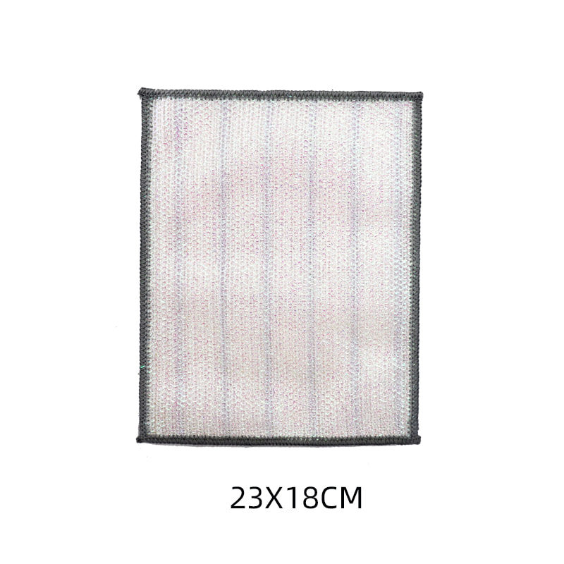 Färgad silk bambu fiber skurduk, ena sidan är en färgglad rengöringsduk med stark skrapförmåga, och den andra sidan är en bambu fiber Rag, som uppfyller de dubbla funktionerna att skrapa och skrubba på ena sidan; Den är oljefri och har stark vattenabsorption. Den är gjord av färgglatt siden, med högt utseende och Zou-behandling på ytan, vilket gör att färgsilkesrengöringsduken med stark skrapkraft har starkare friktionskraft, men skadar inte kokkärlet; Den har bra rengöringseffekt utan oljeborttagning.